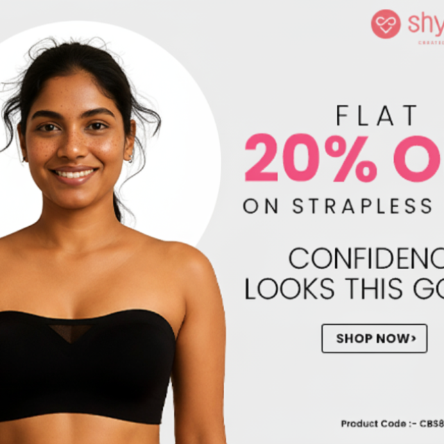 Flaunt your favorite outfits effortlessly with Shyaway’s strapless bras. Designed with strong grip, soft fabric, and perfect shape enhancement. Browse the latest strapless bra collection and save big with Flat 20% Off today!