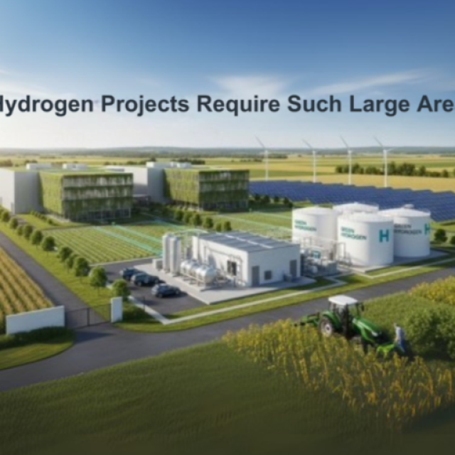 Green hydrogen projects require vast land areas due to large-scale solar and wind farms needed for renewable energy generation. Additionally, space is needed for electrolysis plants, storage, and infrastructure. The combination of energy production, safety zones, and logistics makes land a critical factor in green hydrogen development.