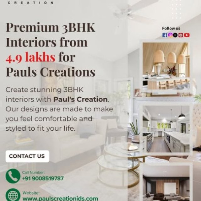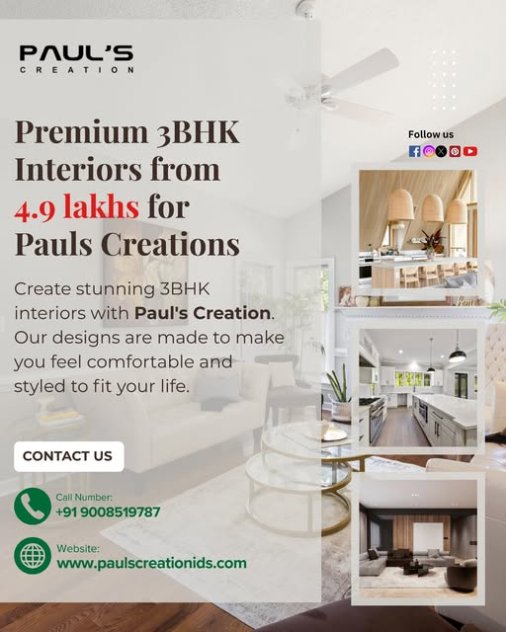 Looking for the Best Interior Designers in Bangalore? Pauls Creation offers the best Interior Designers in Bangalore. We create creative, modern, and functional interior design solutions tailored to your style and budget. Our interior designers design elegant spaces with smart layouts, premium materials, and attention to detail, from 2BHK and 3BHK homes to villas and offices.