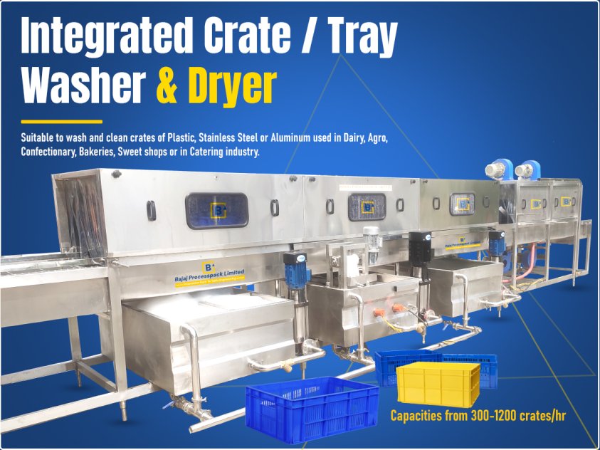 Choose Bajaj Processpack’s industrial crate washing machine and crate dryer for dairy for superior cleaning, minimal labor, and long-term savings. Contact us for a free quote and explore our smart crate washer dryer solutions that redefine efficiency in industrial cleaning.