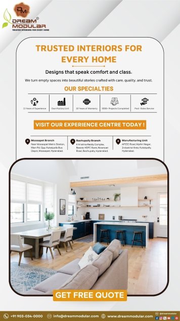 At Dream Modular, we believe that great design begins with understanding your needs. Our Modular Interior Design services focus on blending practicality with aesthetics. From sleek modular kitchens and wardrobes to space-saving TV units and false ceilings, every element is crafted to perfection. Our designs are not only visually appealing but also functional, ensuring that your home remains organized, comfortable, and stylish for years to come.