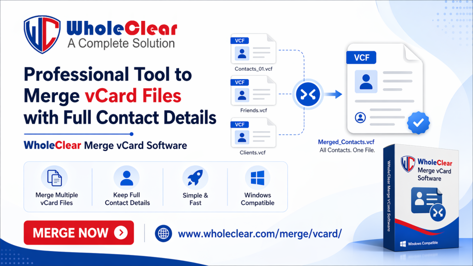 Bring scattered contact files together with WholeClear Merge vCard Software, a practical solution for creating one organized VCF file from multiple vCard files. Built for smooth contact management, this software helps combine separate contact files into a single file while keeping the full contact list clear, complete, and easy to handle.